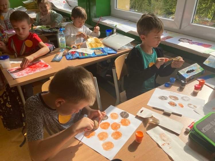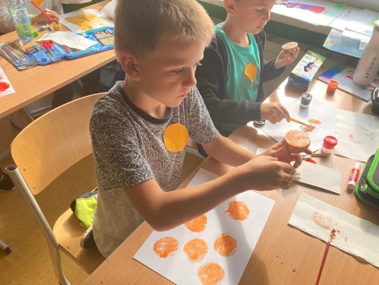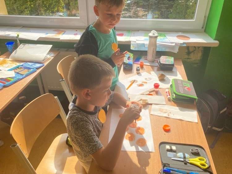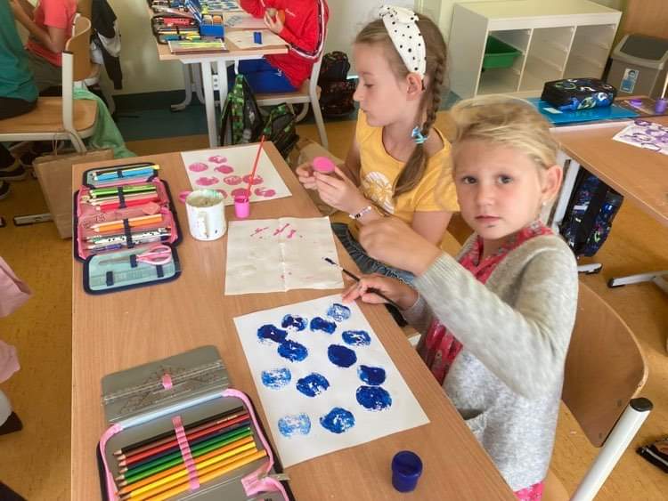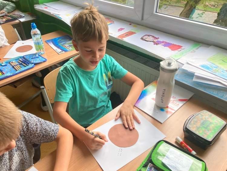 15 września obchodzony jest Międzynarodowy Dzień Kropki. Jest to święto odwagi, kreatywności, odkrywania talentów, a przede wszystkim wspaniałej zabawy. Dzień Kropki dla uczniów klasy 1 zorganizowała p. Beata Kalińska - bibliotekarka. Nie zabrakło czytania książki "Kropka", której bohaterką jest mała Vashti, która dzięki malutkiej kropce i nauczycielce plastyki uwierzyła w swoje możliwości oraz rozmowy na temat opowiadania. Po pogadance uczniowie postanowili pokazać swoje talenty i przystąpili do wykonania swoich kropkowych dzieł.
