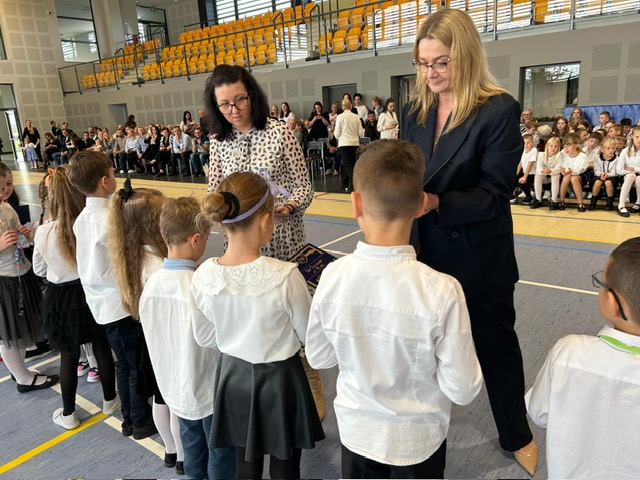 W dniu 10 października 2025 roku w Szkole Podstawowej w Kościelnej Wsi odbyła się uroczystość ślubowania uczniów klas pierwszych połączona z obchodami Dnia Edukacji Narodowej. Uroczystość rozpoczął przewodniczący Samorządu Uczniowskiego Oskar Korach, który powitał wszystkich zgromadzonych gości, nauczycieli, pracowników szkoły, rodziców oraz uczniów. Z okazji Dnia Edukacji Narodowej uczniowie odśpiewali gromkie „Sto lat” nauczycielom i pracownikom szkoły, a uczniowie klasy siódmej wręczyli im symboliczne róże jako wyraz wdzięczności za trud i zaangażowanie w codzienną pracę dydaktyczno-wychowawczą. Po wystąpieniu przewodniczącego głos zabrała dyrektor szkoły pani Katarzyna Laksander, która złożyła serdeczne życzenia wszystkim nauczycielom i pracownikom szkoły, dziękując za ich codzienny wysiłek, cierpliwość i poświęcenie. Następnie wystąpił wójt Gminy Gołuchów pan Tomasz Pawlak. W swoim przemówieniu złożył życzenia nauczycielom z okazji Dnia Edukacji Narodowej oraz wyraził uznanie dla pracy pedagogów życząc dalszych sukcesów i satysfakcji z wykonywanego zawodu oraz zwrócił się z ciepłymi słowami do pierwszoklasistów, gratulując im rozpoczęcia nowego etapu w życiu i życząc wielu sukcesów w nauce. Po oficjalnych przemówieniach rozpoczęła się część artystyczna przygotowana przez uczniów klas 1a i 1b. Mali artyści z przejęciem recytowali wiersze i śpiewali piosenki, zdobywając serca publiczności. Kulminacyjnym momentem uroczystości było pasowanie na ucznia, którego dokonała pani dyrektor szkoły. W ten sposób pierwszoklasiści oficjalnie zostali przyjęci do społeczności szkolnej. Przewodnicząca Rady Rodziców, pani Izabela Leśna, wręczyła pamiątkowe upominki uczniom klas pierwszych, które zostały ufundowane przez Radę Rodziców