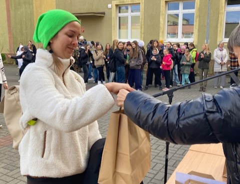 1. Nagrodę za najładniejszy projekt plakietki na przyszły rok otrzymała Oliwia Balcer z III LO w Kaliszu.